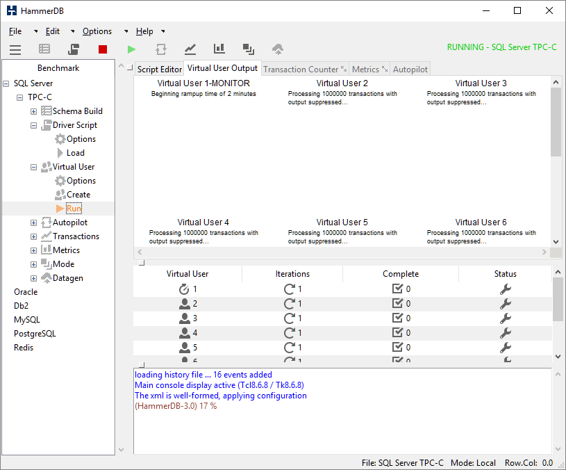 you may choose to run all of your performance tests manually in this way, however generating a performance profile is the key to successful database performance analysis requiring the running of a sequence of tests. Consequently HammerDB enables a way to automate the running of this sequence of tests with the Autopilot Feature.