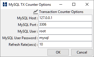 For MySQL the connection parameters are the same as the schema options. The refresh rate determines the sampling interval.
