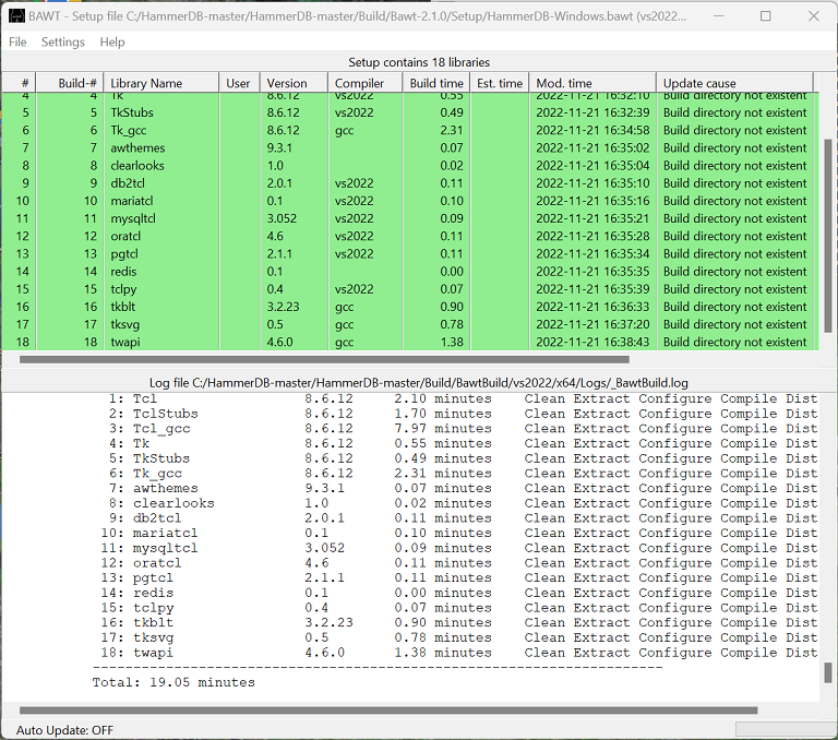 ./Build-Windows.bat x64 vs2022+gcc Setup/HammerDB-Windows.bawt update