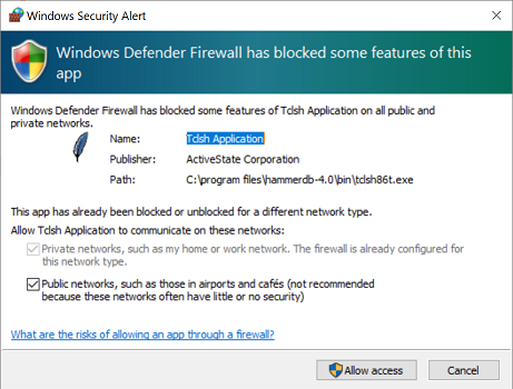 On both Windows and Linux your Firewall configuration should permit communication between the hosts where the agent and the display are running, for example on Windows you may see the following security alert as the agent will open a port for communication, access needs to be permitted to enable communication.
